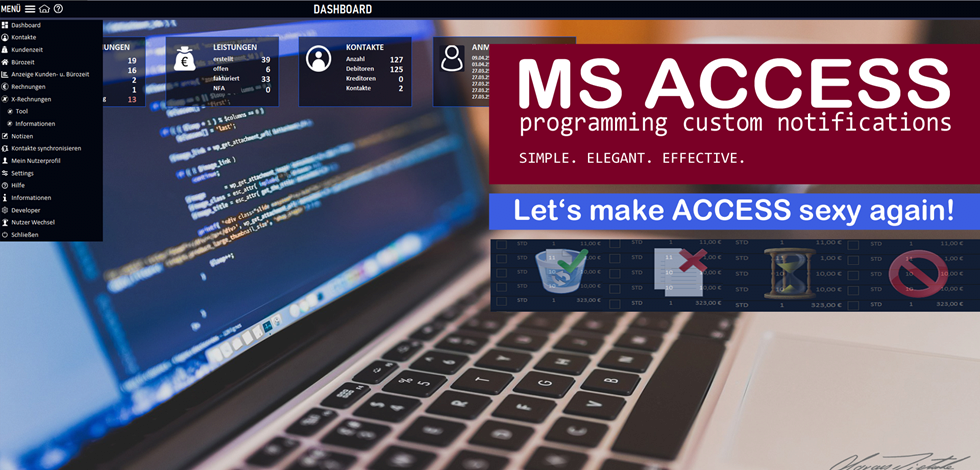 Welcome to my website about MS Access database development! This is all about practical solutions, clever VBA programming and customized database applications with Microsoft Access.