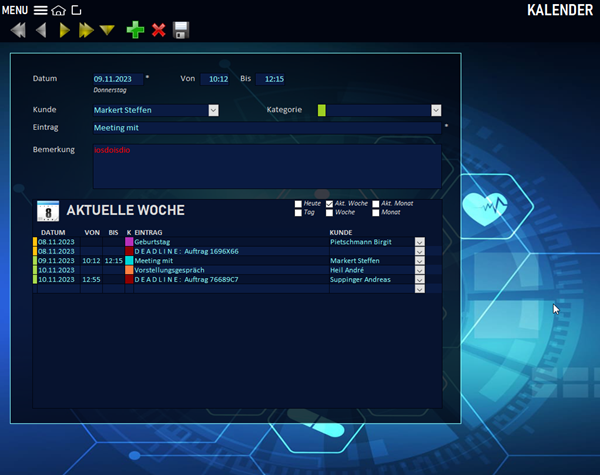 Ob Benutzeroberflächen, komplexe Formularlogik, automatisierte Berichte oder individuell gestaltete Lösungen – diese Beispiele geben Ihnen einen direkten Einblick in meine Arbeit und wie praxisnah meine Datenbanklösungen umgesetzt sind.