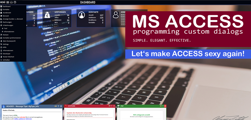 Welcome to my website about MS Access database development! This is all about practical solutions, clever VBA programming and customized database applications with Microsoft Access.