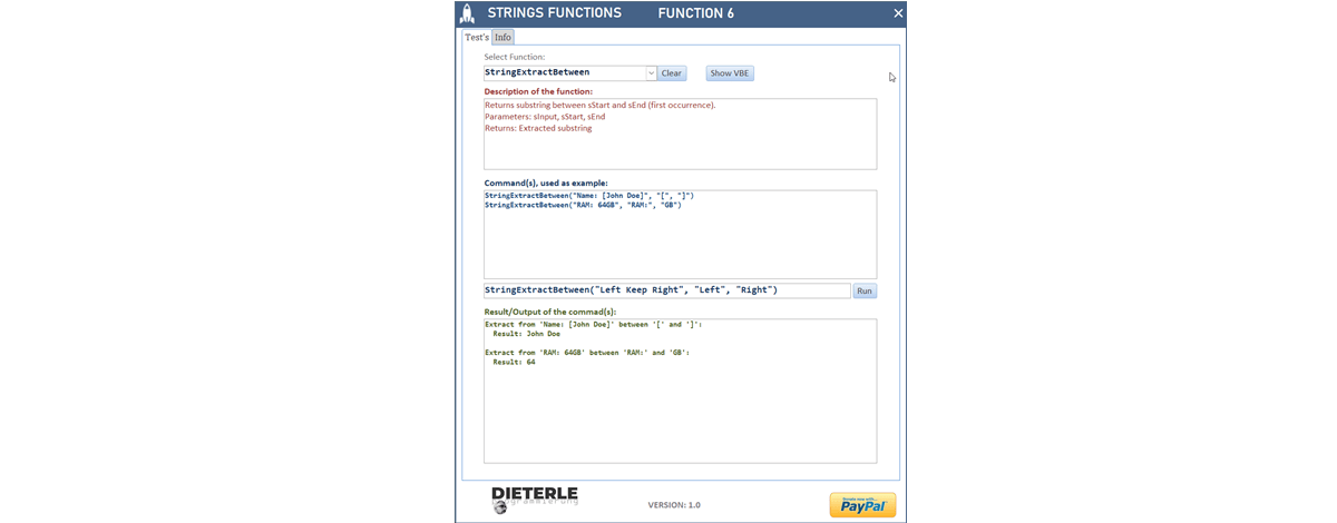 All functions are commented, validate inputs and can be inserted directly into existing projects. With the test form you can try every function immediately โ no setup, no add-in required. You only need the module modHelper_String. Everything else is just for testing and presentation.