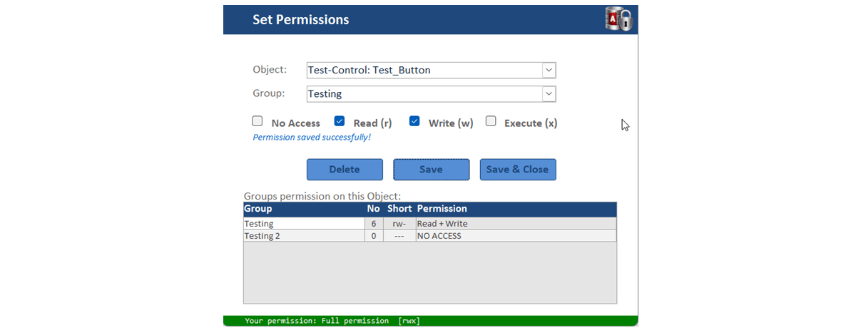 It allows you to create users and groups, and define permissions across forms, reports, and all types of controls — giving you fine-grained access control within your Access applications.