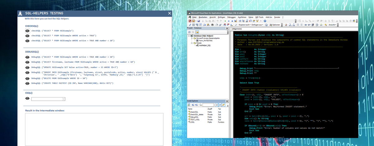 MS Access und SQL – das gehört einfach zusammen. Wer regelmäßig entwickelt, weiß: man kommt nicht drum herum. Und noch mehr: man schreibt viele SQL-Statements, debuggt mühsam, formatiert Werte per Hand ... das kostet Zeit und Nerven. 😤